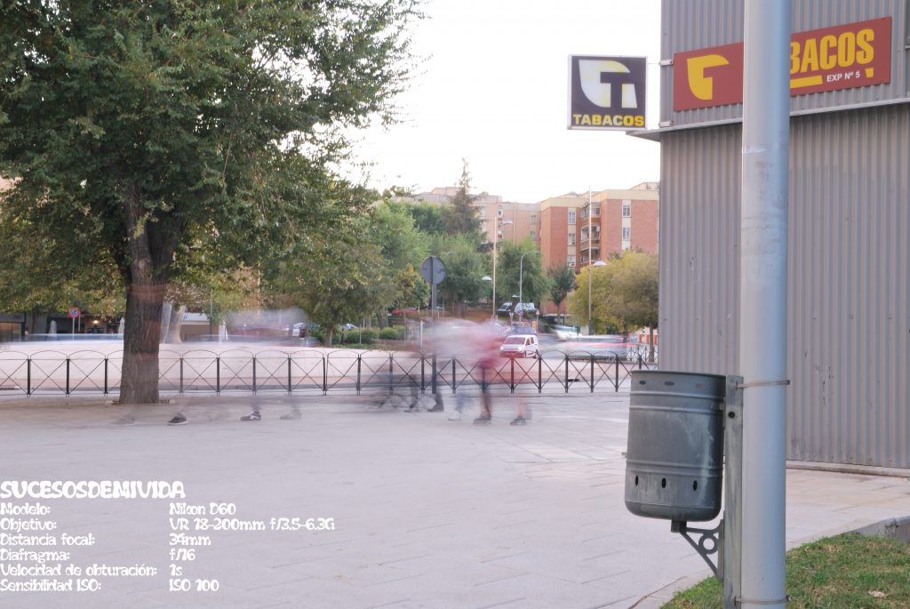 Por desgracia, si bien la foto no me disgusta y buscaba precisamente ennmarcar el movimiento entre el edificio y el árbol, creo que la farola y la papelera principalmente se han convertido en el centro de atención. Además, hay personas que se «están fugando» de ese marco imaginario que buscaba, indefiniendo el tronco del árbol. También tengo la sensación que el uso del color en este caso, elimina parte del encanto de la foto.