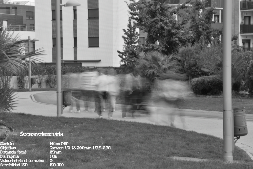 De todas elegí esta, debido a que siento que el camino y las farolas me han ayudado a marcar la acción de las personas y por tanto la técnica. Así mismo la mezcla de urbanismo con un edificio de ladrillos blancos, acentuado por ser la foto en blanco y negro, con el jardín de árboles plasma el vivir de la localidad de la foto, donde aún se puede disfrutar de varias zonas verdes.