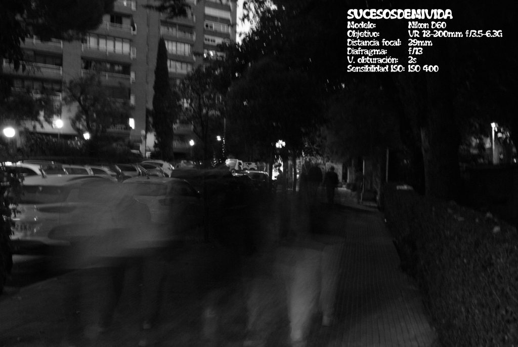 Quizás esta haya sido la foto que más me ha gustado, era ya de noche y podemos observar las luces y el movimiento en primer plano. Además en este caso un movimiento de atrás hacía delante lo que te lleva a sumergirte en la oscuridad final de la foto. No la elegí, porque siento que al haber usado una iso alta, la foto me ha generado algo de ruido y a pesar de haber usado trípode, tengo la sensación de algo de trepidación.