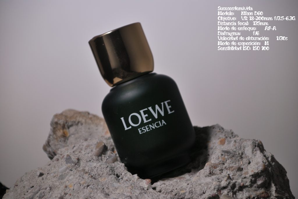 El objeto, no fue otro que un bote de Esencia de Loewe, y espero que lo conozcáis y lo tengáis en la cabeza, porque cualquier parecido de mis fotos con la realidad es pura casualidad.