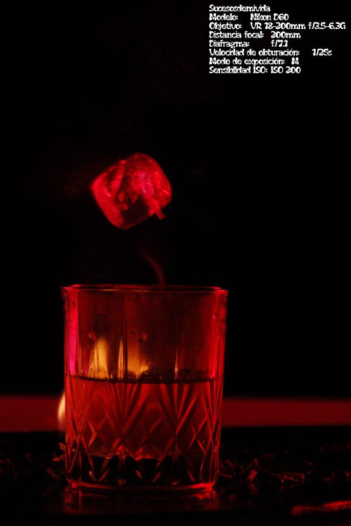 Gracias a ello, hoy tengo una bonita serie de fotos en las cuales podemos ver capturado desde el hielo volando al vaso con un pequeño fuego iniciándose.