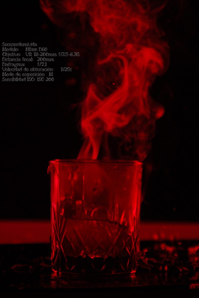 Y por último ya volviendo a la oscuridad, solo queda el vaso, el único elemento inerte en la escena, mientras el humo huye del lugar….
