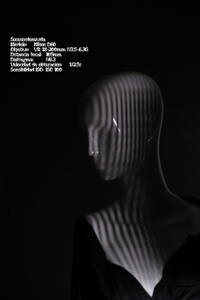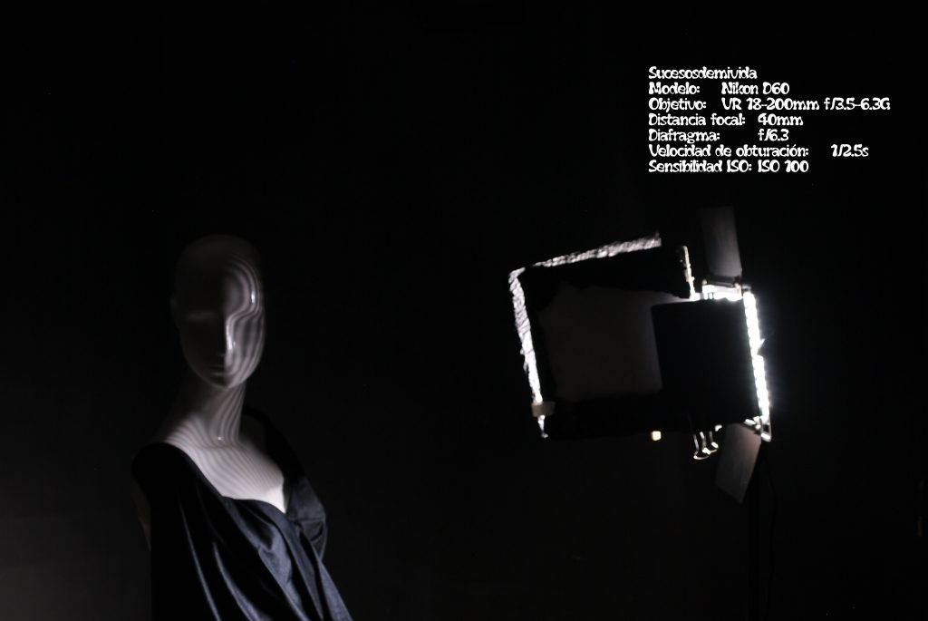 Así como una especie de making off, en la cual se puede observar uno de los focos usados, y como difuminamos la luz, al tiempo que se muestra una cámara tapando parte de la cara del maniquí pero viéndose el reflejo de este en el jarrón